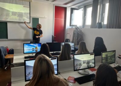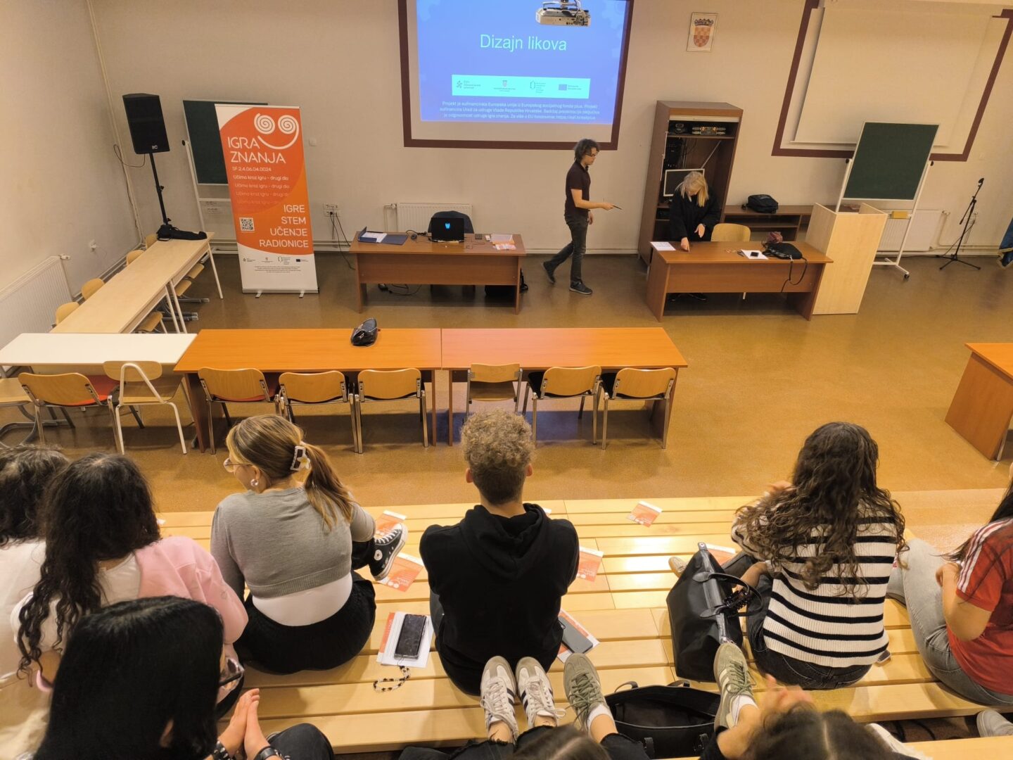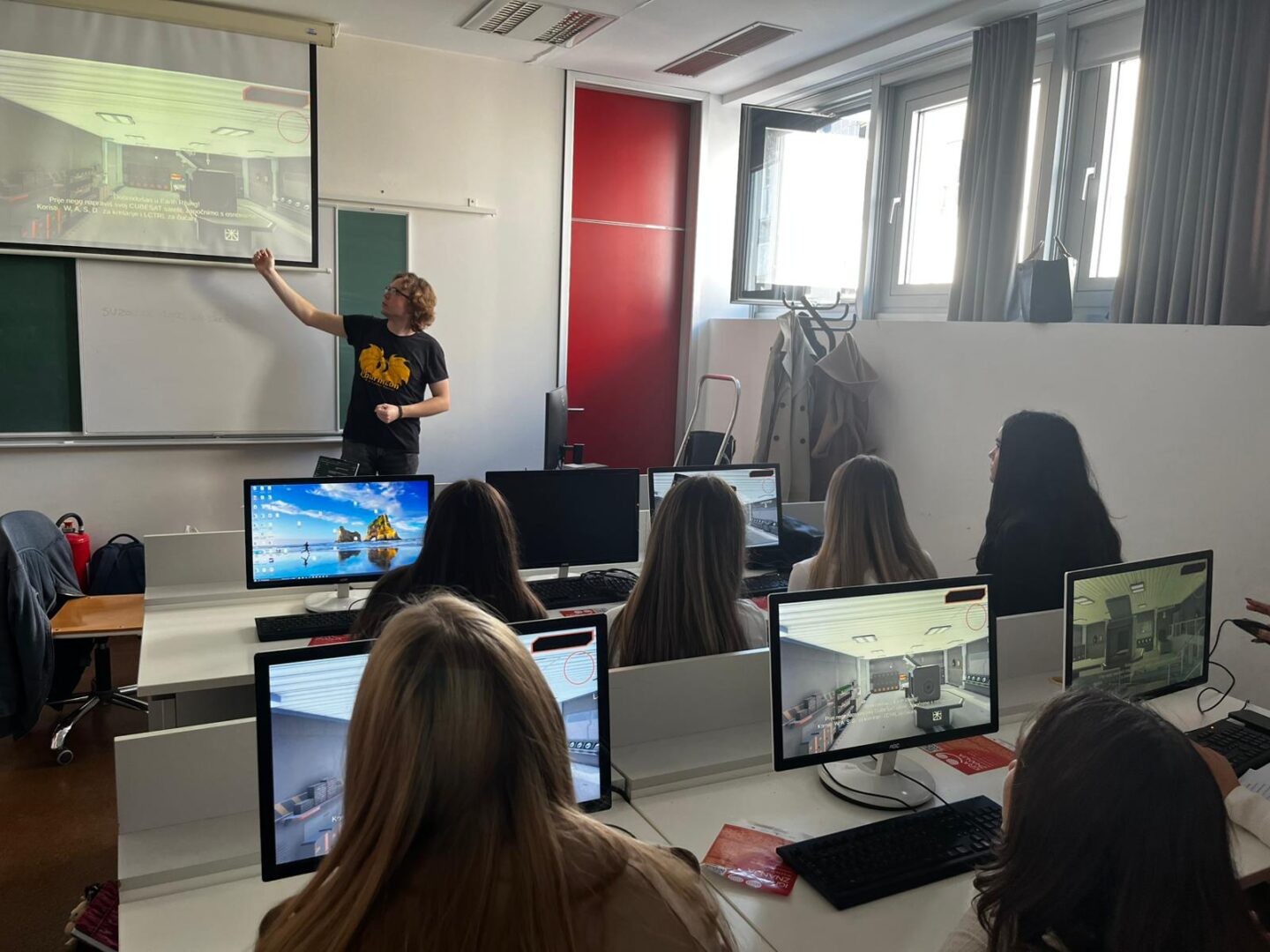 Učenici su naučili osnove 3D modeliranja i saznali kako se izrađuju digitalni likovi, predmeti i okruženja u video igrama. U drugom dijelu radionice upoznali su se s pojmom game enginea – programskog sustava koji omogućuje izradu, vizualizaciju i pokretanje video igara, te kroz kviz provjerili svoje novo stečeno znanje.