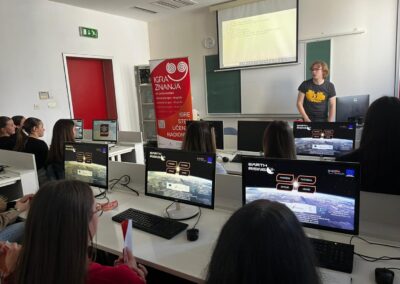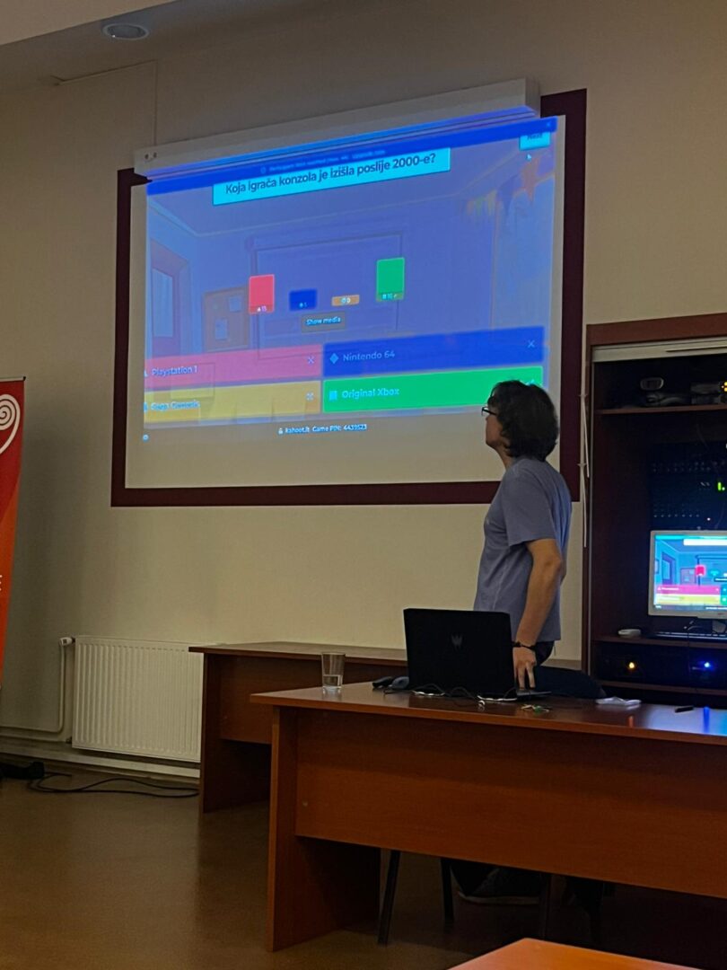 Kroz razgovor i interaktivne zadatke učenici su naučili kako su se videoigre razvijale od prvih jednostavnih formata do suvremenih edukativnih alata te upoznali različita zanimanja koja se kriju iza razvoja jedne igre – od dizajnera i programera do umjetnika, scenarista i testera.