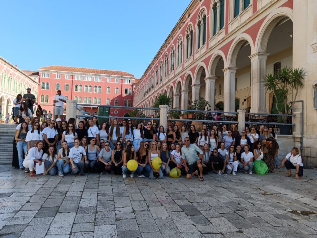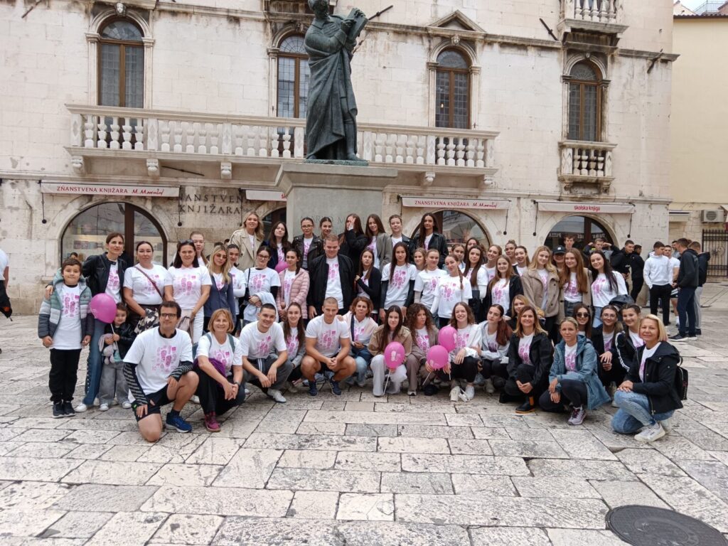 Pod budnim okom naših nastavnika tjelesne i zdravstvene kulture, Joške Buzov i Pavla Vodanovića 97 učenica 1.b, 1.c.,1. e, 1.f, 2.a, 2.c, 2.d., 2.f, 2.h, 3.g, 4.d i 4.h pripremale su i otplesale najveći flashmob snimljen na splitskoj Rivi u znak podrške ženama oboljelim od raka dojke.