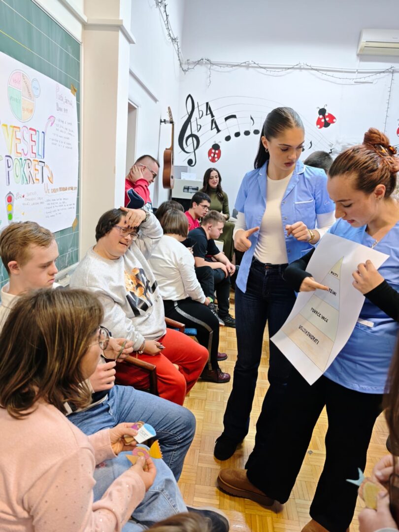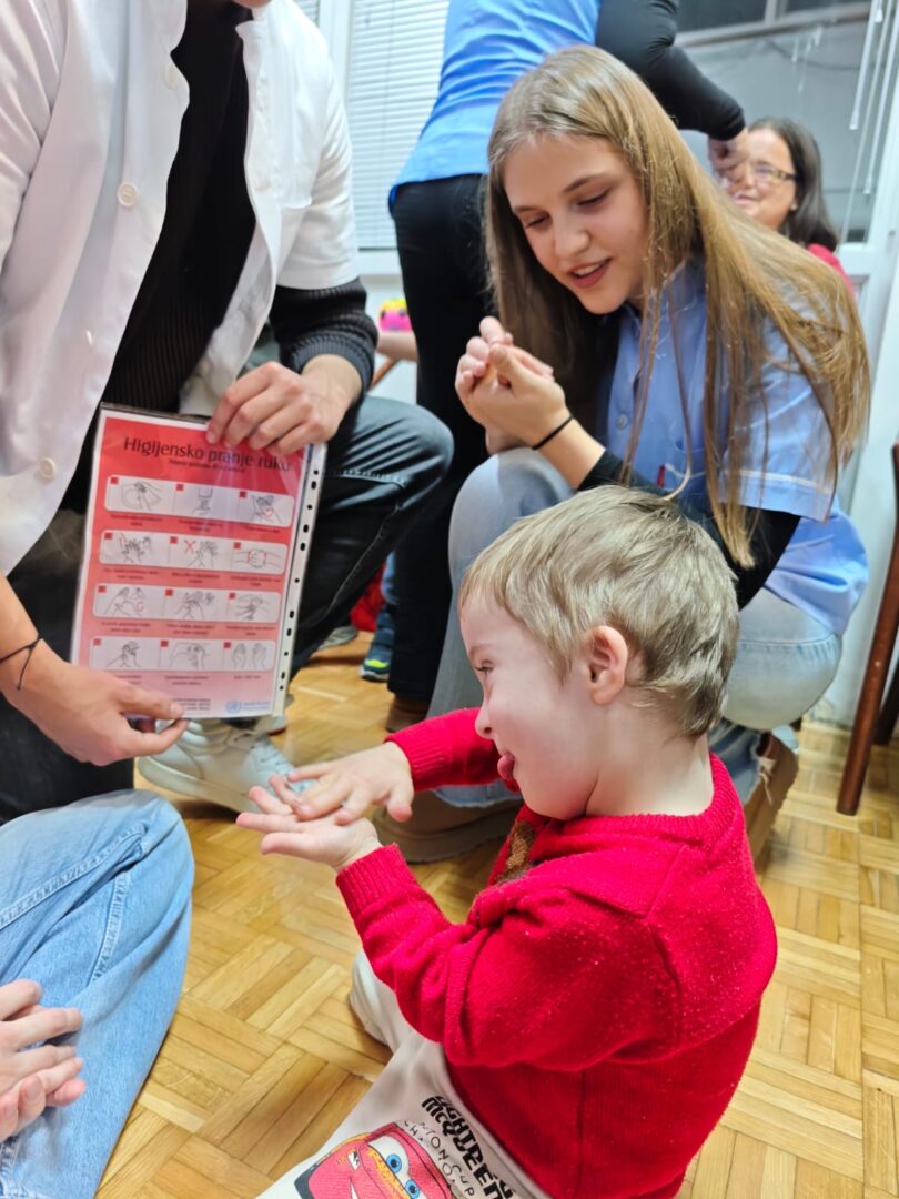 U sklopu projekta RUN FOR DOWN učenici petog razreda Zdravstvene škole su sa svojim mentoricama osmislili aktivnosti kako bi educirali osobe s Downovim sindromom o pravilnoj prehrani i tjelesnoj aktivnosti te educirali korisnike o pravilnoj higijeni ruku u svrhu prevencije nadolazećih virusnih i bakterijskih bolesti. Kroz niz osmišljenih aktivnosti željeli su promovirati zdrave životne navike i prevenirati navedene probleme i bolesti. Posjet Udruzi za sindrom Down Split protekao je u ozračju veselja, edukativnih igara, tjelesnih aktivnosti i pjesme. Nakon zajednički provedenih aktivnosti, korisnici Udruge za sindrom Down Split darovali su učenicima pjesmu uz gitaru kao znak zahvalnosti i lijepog druženja.