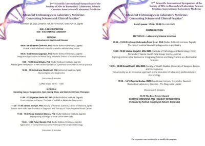Jutro je započelo odlaskom prema Kliničkoj bolnici Sveti Duh, jednoj od najstarijih zagrebačkih bolnica, poznatoj po razvijenim medicinskim odjelima i dugoj tradiciji provođenja stručnih i znanstvenih skupova. U dvorani Zrinjevac provedena je registracija, preuzete su akreditacije te su svi smješteni na predviđena mjesta. Nakon toga započeo je Drugi Simpozij “Advanced Technologies In Laboratory Medicine: Connecting Science And Clinical Practice”.