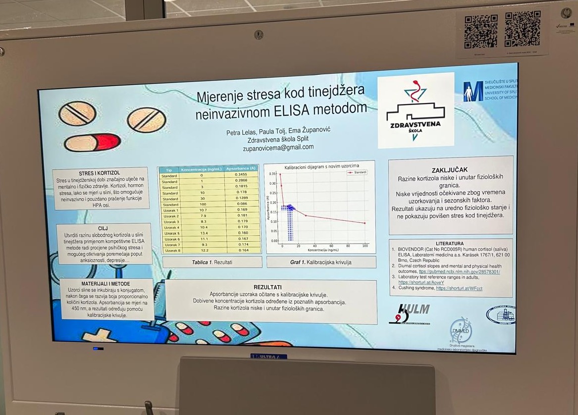 Ove godine su naše učenice 4. g razreda smjera zdravstveno – laboratorijski tehničar/ka Paula Tolj, Ema Županović i Petra Lelas sudjelovale na simpozij sa radom i posterom: „Mjerenje stresa kod tinejdžera, neinvazivnom ELISA metodom“ uz mentorstvo: Dr. Sc. Sandre Marijan – Sveučilište u Splitu Medicinski fakultet  Fakultet za forenzične znanosti, Split; , bacc. med. lab. diagn. Nediljka Petrovski, bacc. med. lab. diagn. Vesne Gotovac. Zahvaljujemo se Sveučilištu u Splitu Medicinskog fakulteta, znanstvenom odboru  i Sandri Marijan na pruženoj prilici i podršci da potičemo i razvijamo buduće mlade znanstvenike.