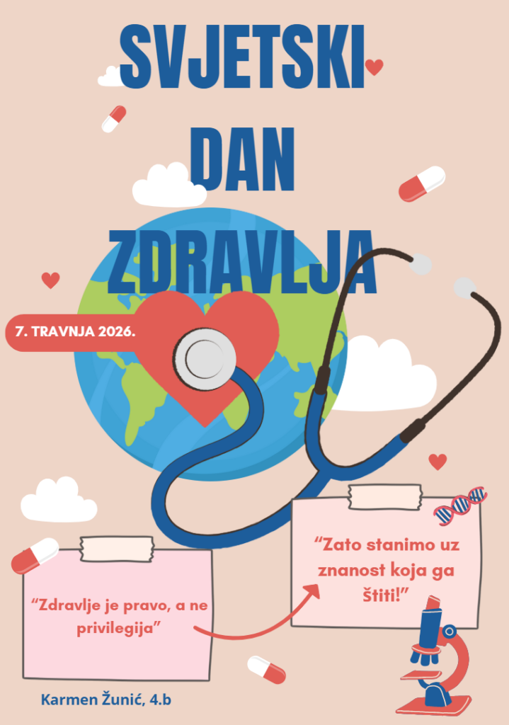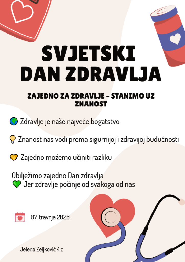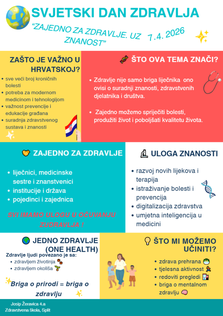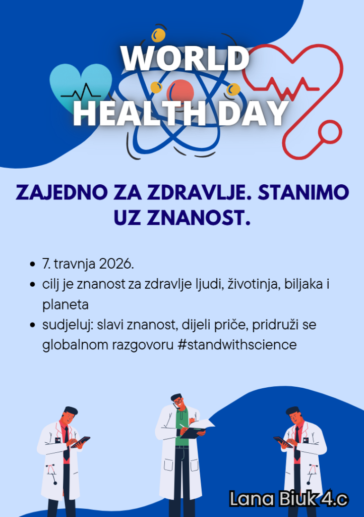 Svake godine 7. travnja obilježava se Svjetski dan zdravlja kao podsjetnik na važnost zdravlja kao temeljnog ljudskog prava. Ove godine Svjetska zdravstvena organizacija okuplja svijet pod snažnom porukom: „Zajedno za zdravlje. Stanimo uz znanost.“