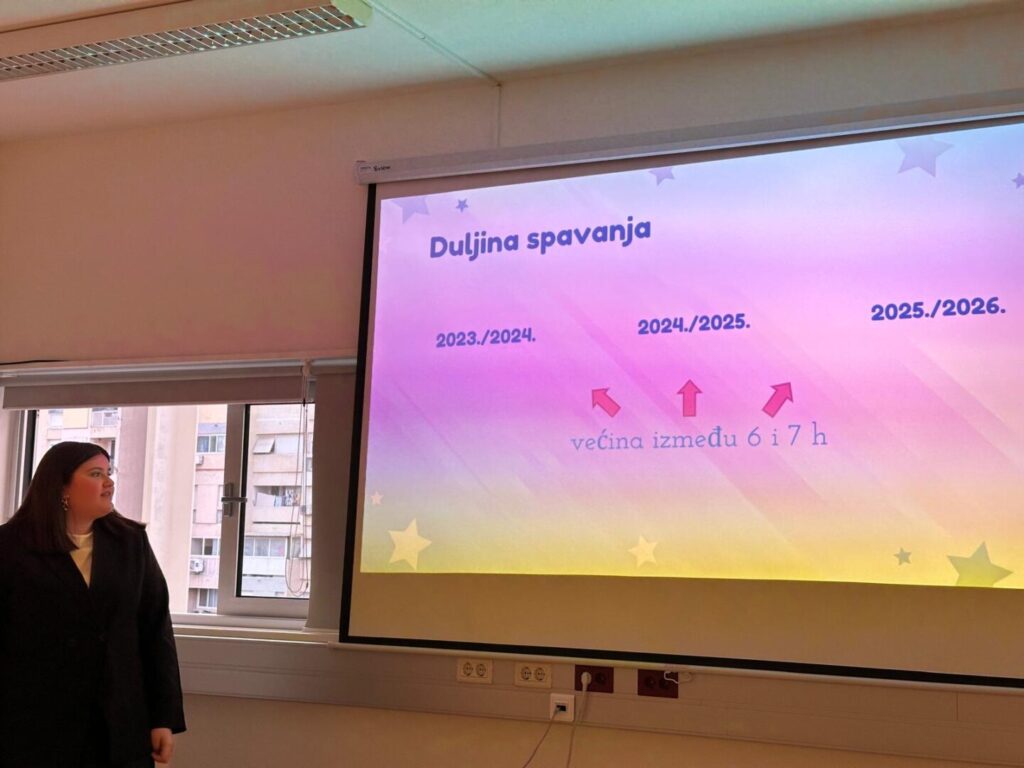 Osim toga predstavili smo i usporedne rezultate istraživanja navika spavanja kod učenika prvih razreda prošle i ove godine koje provode nastavnice Ognjenović i Biskupović u suradnji s Katedrom za neuroznanost MF Split.